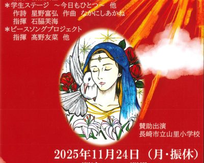 イベント アーカイブ: 全ての記事 2025年11月 2025年10月 2025年9月 2025年8月 2025年7月 2025年6月 2025年5月 2025年4月 2025年3月 2025年2月 2025年1月 2024年12月 開催期間 11月22日(土) 第48回 純心英語教育公開講座「身近な異文化を考える―この煮込み定食の謎が解けるか―」 開催期間 11月24日(月・振休) [純心コール・マリーヱ]第28回 定期演奏会 開催期間 12月6日(土) 英語学習者のための実践で役立つスキルセミナー③ 開催期間 12月13日(土) 地域連携センター公開講座 『オランダ船が尖閣で遭難 薩摩と長崎が動いた』/『キリスト教哲学の歴史』 開催期間 1月24日(土) 地域連携センター公開講座 『はじめての「源氏物語」』 2025年度 公開講座 終了しました 11月15日(土) まで 学園創立90周年記念[博物館]企画展示近藤益雄というひと ― 教育者・表現者が残した愛のカタチ ― 終了しました 11月15日(土) 第37回 児童教育研究所公開講座 【研修会】保育の職場内の人間関係とコミュニケーション -居心地のよい職場となるために- 終了しました 11月8日(土) 学園創立90周年記念純心平和さるく 終了しました 11月7日(金) 第48回 純心博物館講座<第2弾>[トークイベント]近藤益雄というひとを語る-福祉の実践とその理念-【会場&オンライン同時開催】 1 / 1012345678910次のページへ