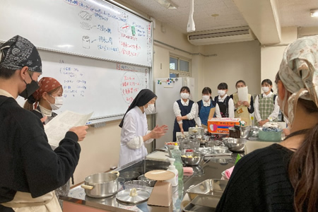 「純心の継承と開発」の授業は、シスターが作るスイーツを継承するための学びと、純心をデザインするための学びの2つがあります。