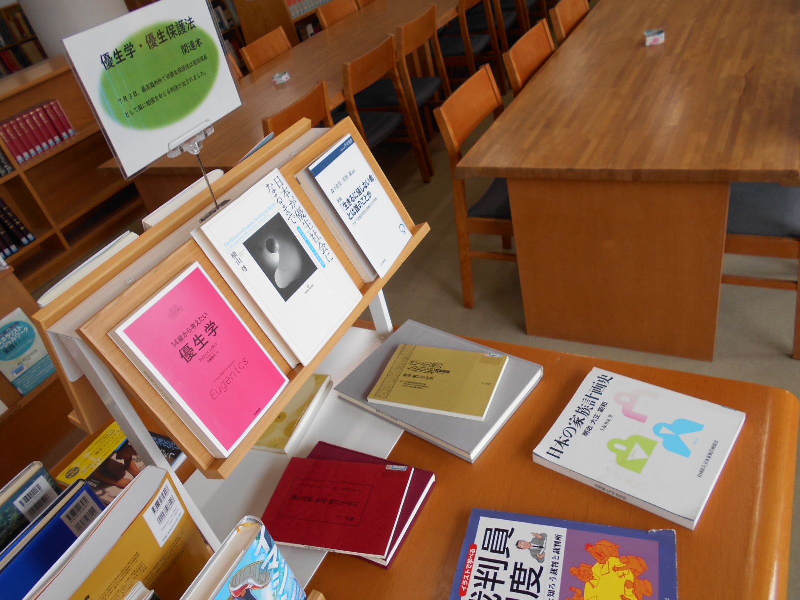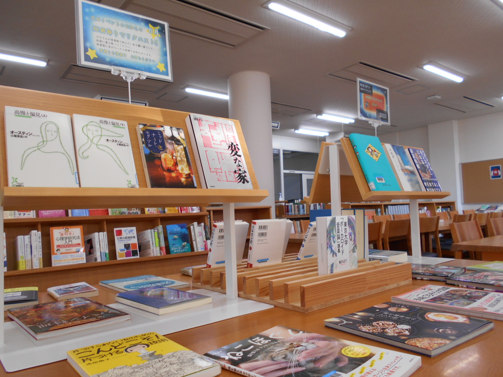 新着図書の前の展示台