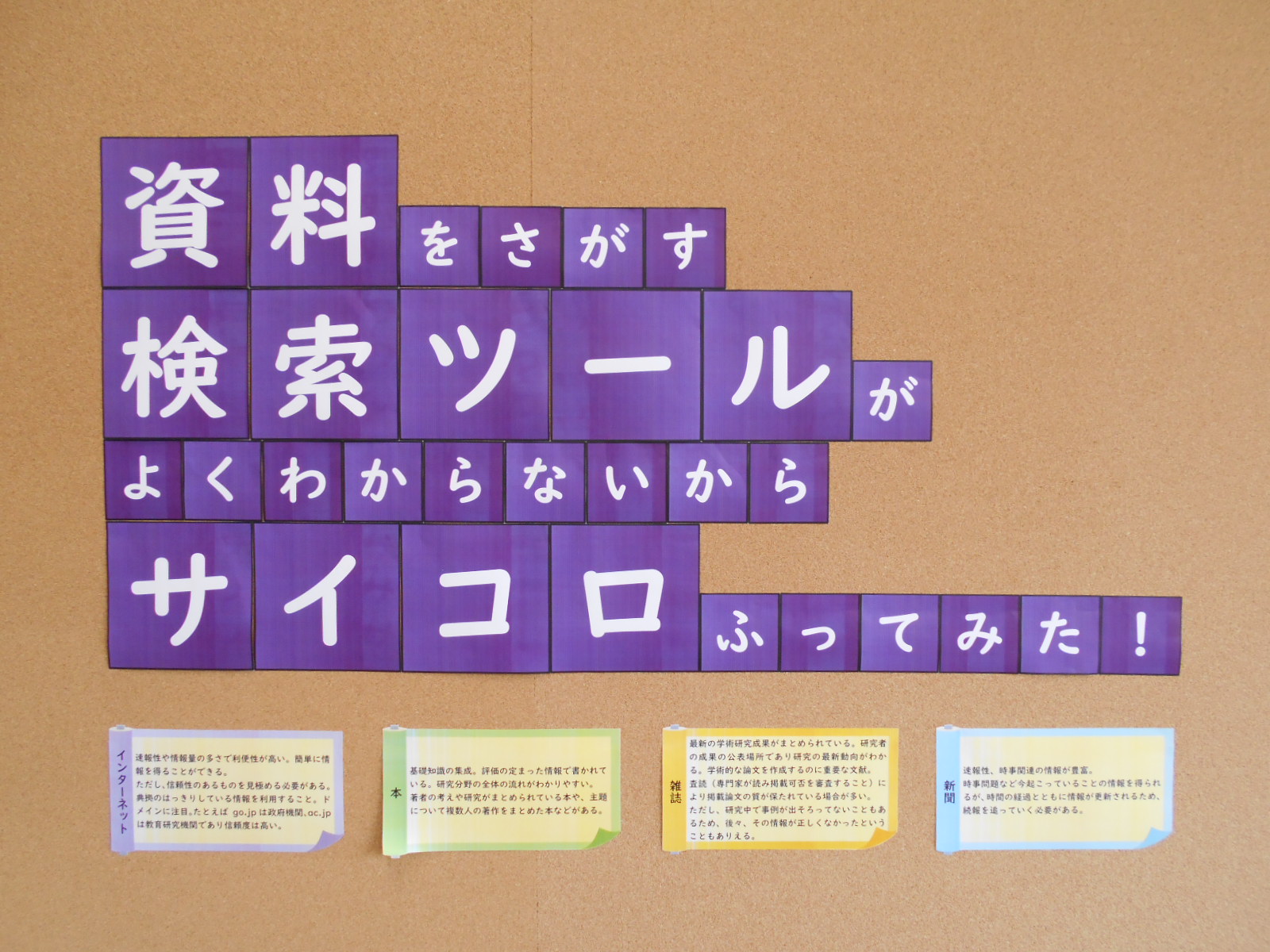 展示・イベントのお知らせは、学内掲示板や館内インフォメーションボードで確認できます。