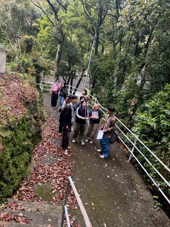 フィールドワークでは、学生はグループに分かれ歩き、手分けして気づきを記録したり写真を撮ったりし、地域住民の方に話を伺えたグループもあり、充実した時間となりました。今後の授業では、行政と地域住民の方の異なる視点からの講義を受講し、フィールドワークでの気づきも取り入れて、学びを深めていきます。