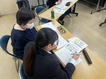 各実習生は、社会福祉協議会の職員の方とペアを組み、提示された情報をもとに、誰にどのような支援が必要か、その支援のためにどこと何を連携するのか、さらにその連携によってどのような効果が期待できるかについて、具体的に検討しました。