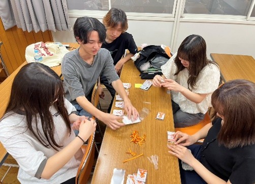 10月8日(火)に、児童虐待防止運動のシンボルであるオレンジリボンの作成を行いました。学生たちは、一つひとつ丁寧にリボンを作り、袋詰めまでを協力して行いました。