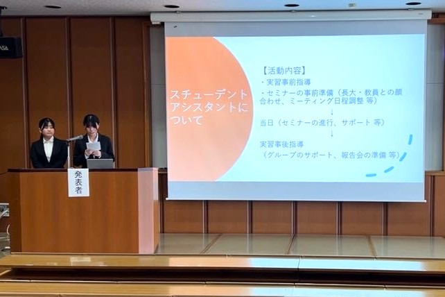 今年度の地域包括支援実習でSA(スチューデントアシスタント)を担った本学地域包括支援学科4年生2名が「長崎地域医療セミナーin GOTO 〜体験して学ぶ島の医療と福祉〜」をテーマに発表を行いました。SAの活動内容、そして地域包括支援実習の目的や概要について報告しました。