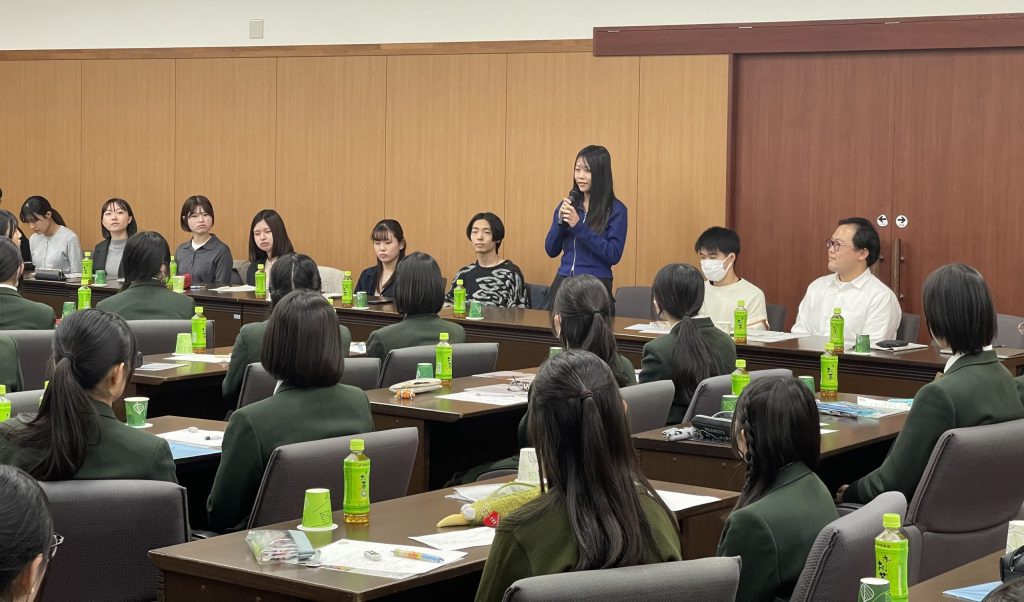 それぞれの立場で平和活動について分かりやすく紹介する学生たちと、真剣なまなざしで話に耳を傾け、様々な質問をしてくださる中学生の皆さんとの間で、若い世代間の平和交流が活発に行われました。