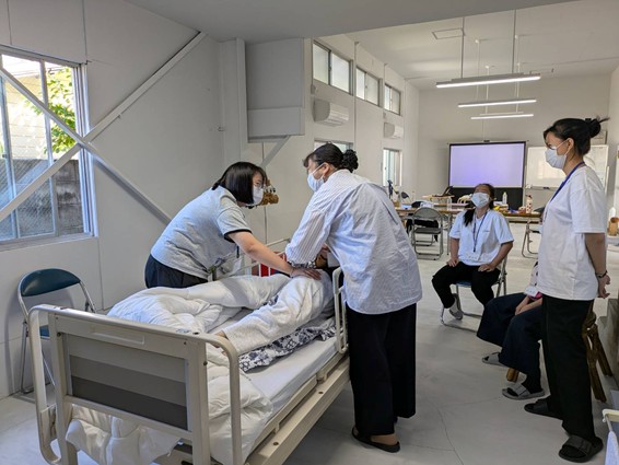 長崎県介護事業支援協同組合と協働し、本学の福祉・心理学科、ケアワークコース教員3名が、介護を学ぶベトナムの技能実習生を対象に、7日間(計42時間)の介護講習を実施しました。