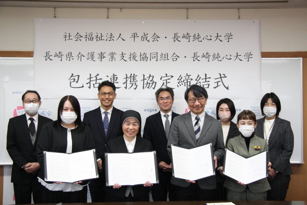 この度、長崎県介護事業支援協同組合並びに社会福祉法人平成会と下記のとおり、地域の発展及び活性化に寄与することを目的とした包括連携協定を締結しました。