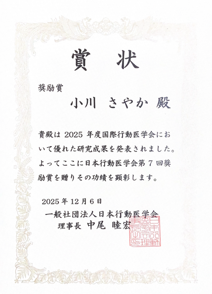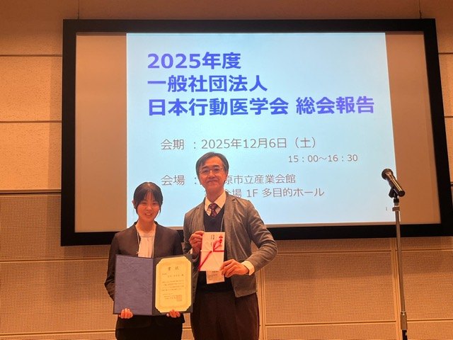 2025年12月6日(土)~12月7日(日)に相模原市立産業会館にて開催された第32回日本行動医学会学術総会において表彰されました。