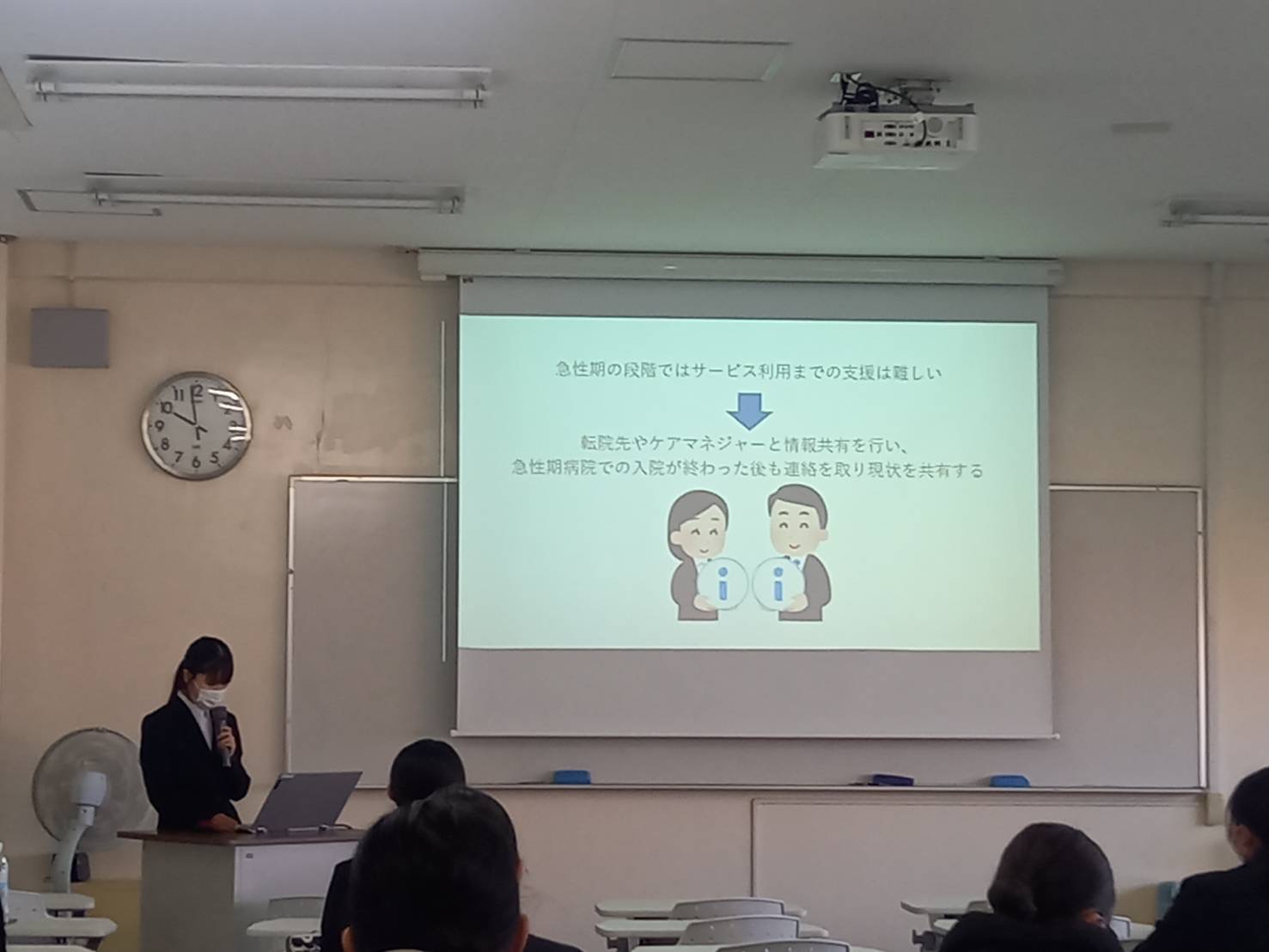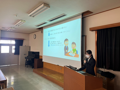 当日は、来年度に実習を予定している学生から、現場での関わり方に関する具体的な質問が寄せられ、報告学生が自身の経験を踏まえて回答する場面も見られました。これにより、実習経験が次年度の学生へと継承される、学年を超えた学びの機会となりました。