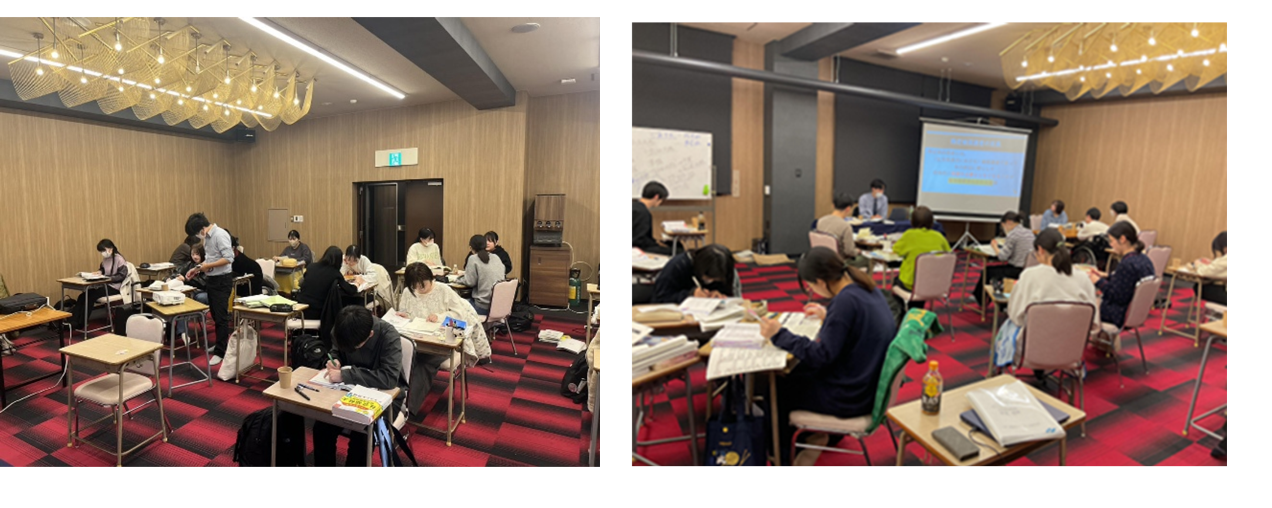 • 合宿前までは、合宿3日間頑張れるのか不安だったのですが、先生たちのわかりやすい講義やみんなと分からないところを一緒に学習することで合宿前よりも力がついてあと1ヶ月頑張ろうとより感じました。2泊3日間長いんだろうなと感じていましたが、先生やみんなのおかげでとても充実していてあっという間の2泊3日でした。あと約1ヶ月みんなと励まし合いながら合格できるよう頑張ります。