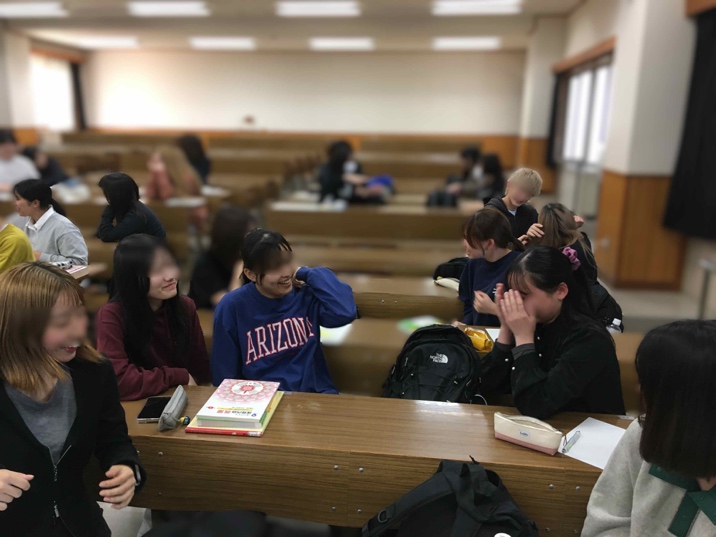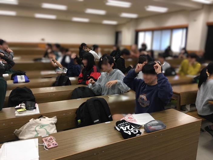 この日は複数の活動を行いましたが、まずは言葉を使わずに自分の意思を伝える体験をしてもらいました。これは、言葉がまだ十分に使えない時期の子どもが、大人に何かを伝えようとしている場面を追体験するための活動です。後で感想を聞いてみると、身振り手振りを頑張ったのに、簡単なことでも正確に伝えられないことのもどかしさを語ってくれました。言葉で意思を伝えることができない時、子どもがどんな気持ちを味わっているのか活動を通じて感じ取ることができたのではないでしょうか。改めて、言葉の便利さに気づいたり、まだうまく話すことができない時期の子どもが保育者に何かを伝えようとする際の苦労が想像できたのではないかと思います。