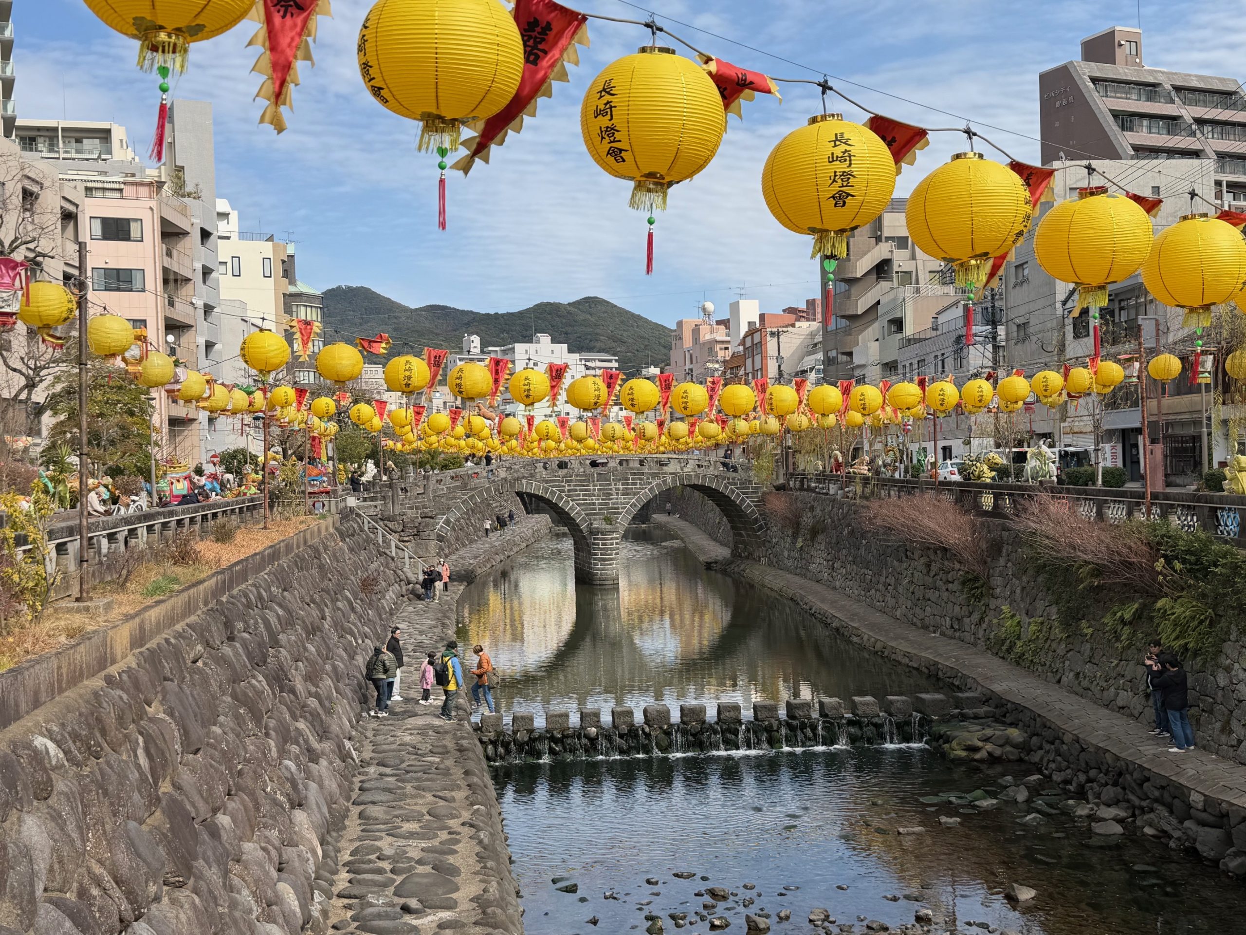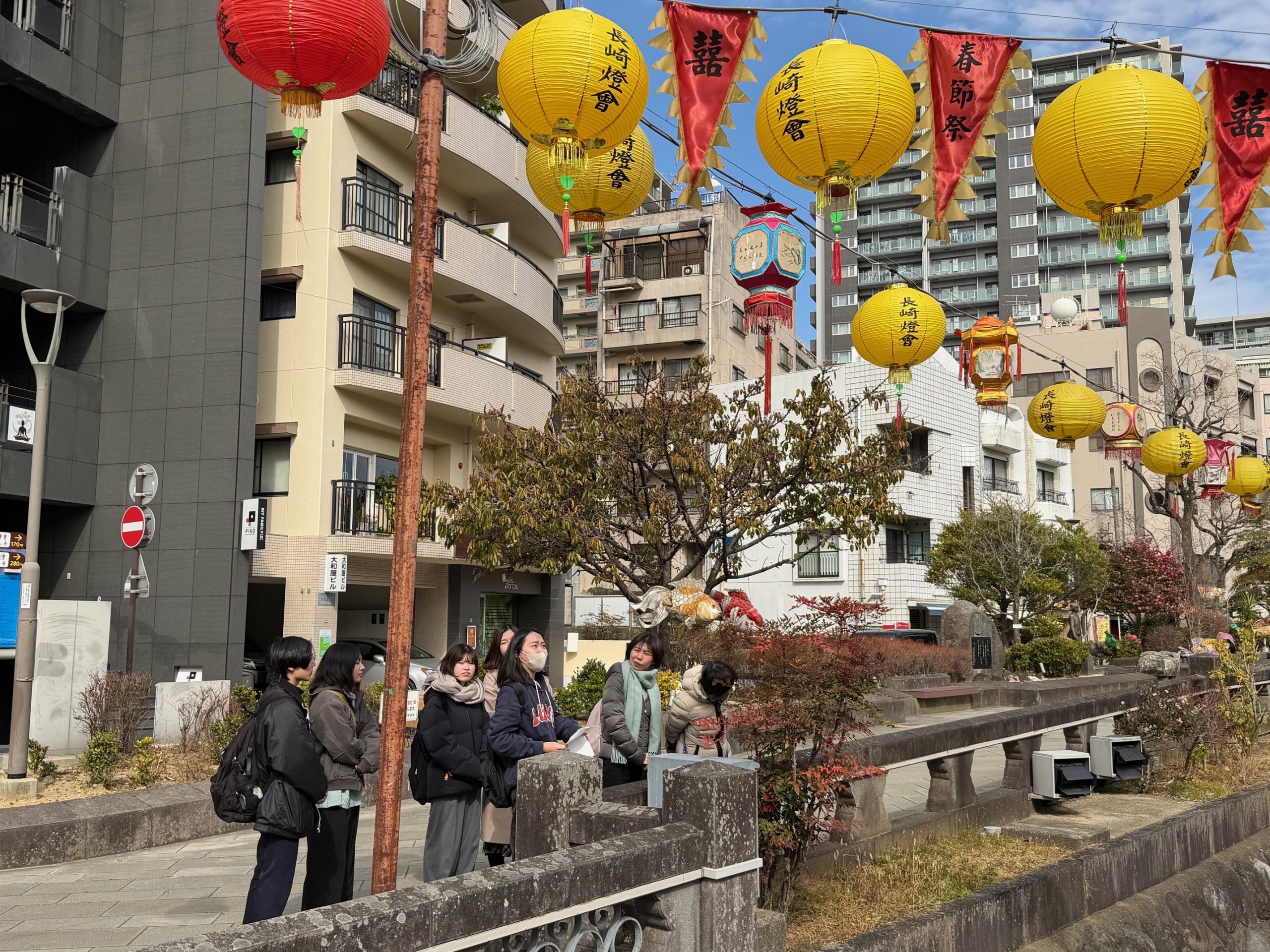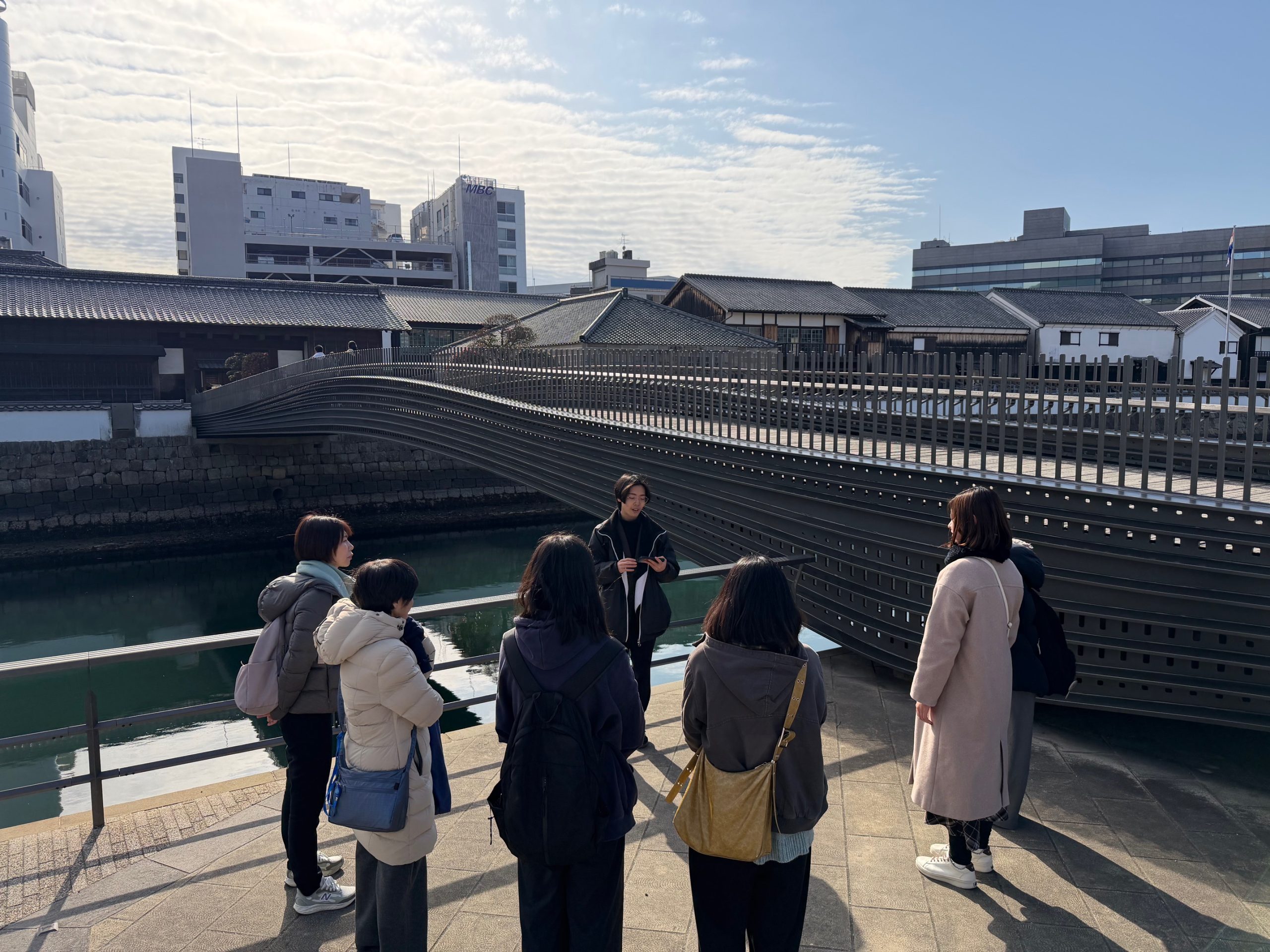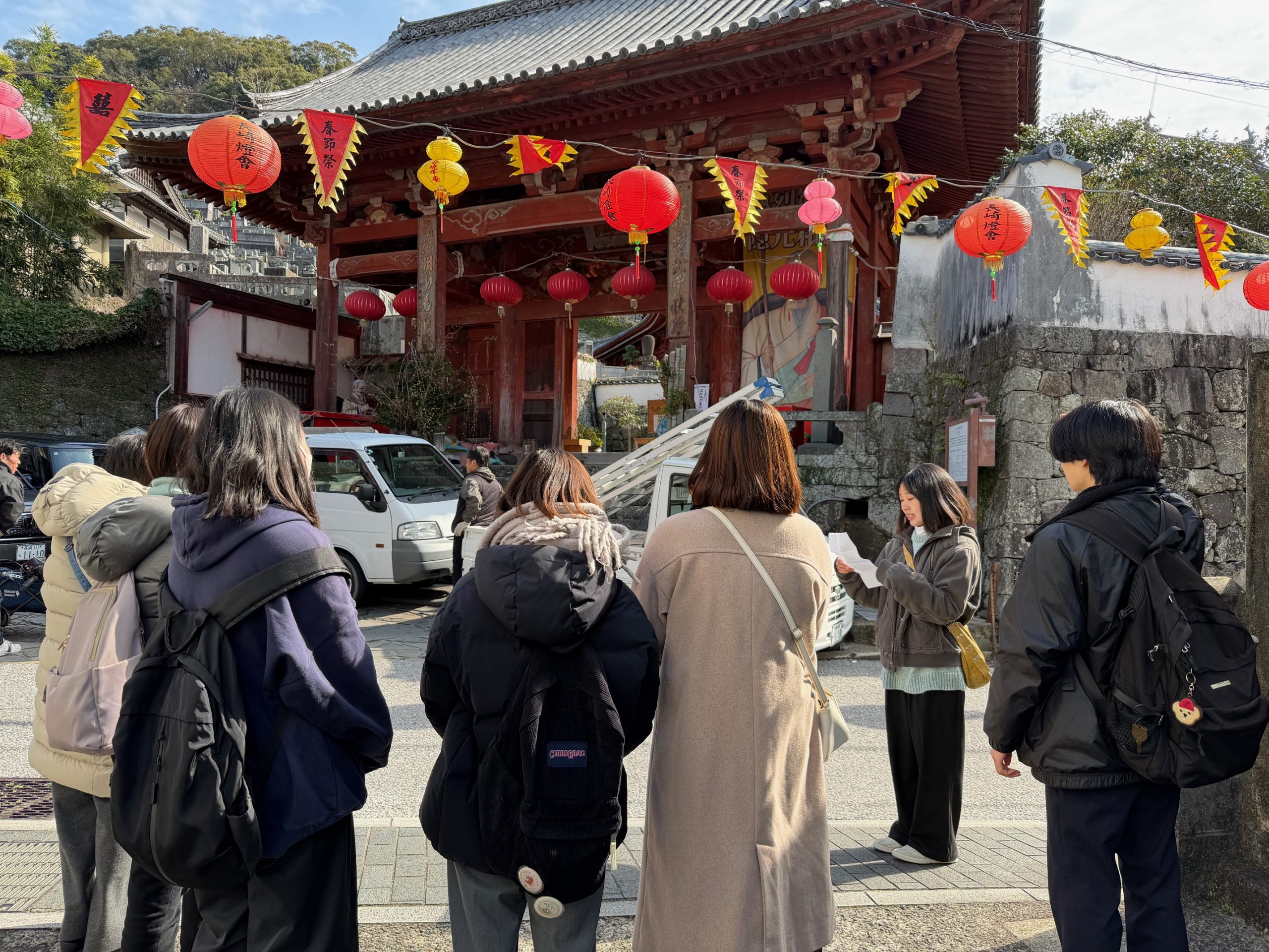 Prior to the actual tour, students prepared by researching each site and preparing the necessary vocabulary and grammar structures often used for tour guiding.The tour was given all in English. The sites visited were Spectacles Bridge, Koufuku Temple, Nakadori Shopping Street, and Dejima.