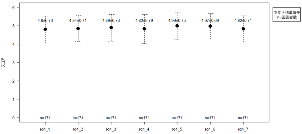 問4 1~7の分析結果(各項目に対する平均値と標準偏差の算出)